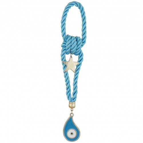 ΜΠΟΜΠΟΝΙΕΡΑ ΚΡΕΜΑΣΤΗ ΜΠΛΕ ΜΕ ΜΕΤΑΛΛΙΚΟ ΚΑΡΑΒΑΚΙ ΧΡΥΣΟ-ΛΕΥΚΟ-ΜΠΛΕ..