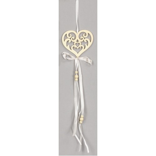 VINTAGE ΞΥΛΙΝΗ ΚΑΡΔΙΑ ΚΡΕΜΑΣΤΗ ΕΚΡΟΥ τεμ. 100